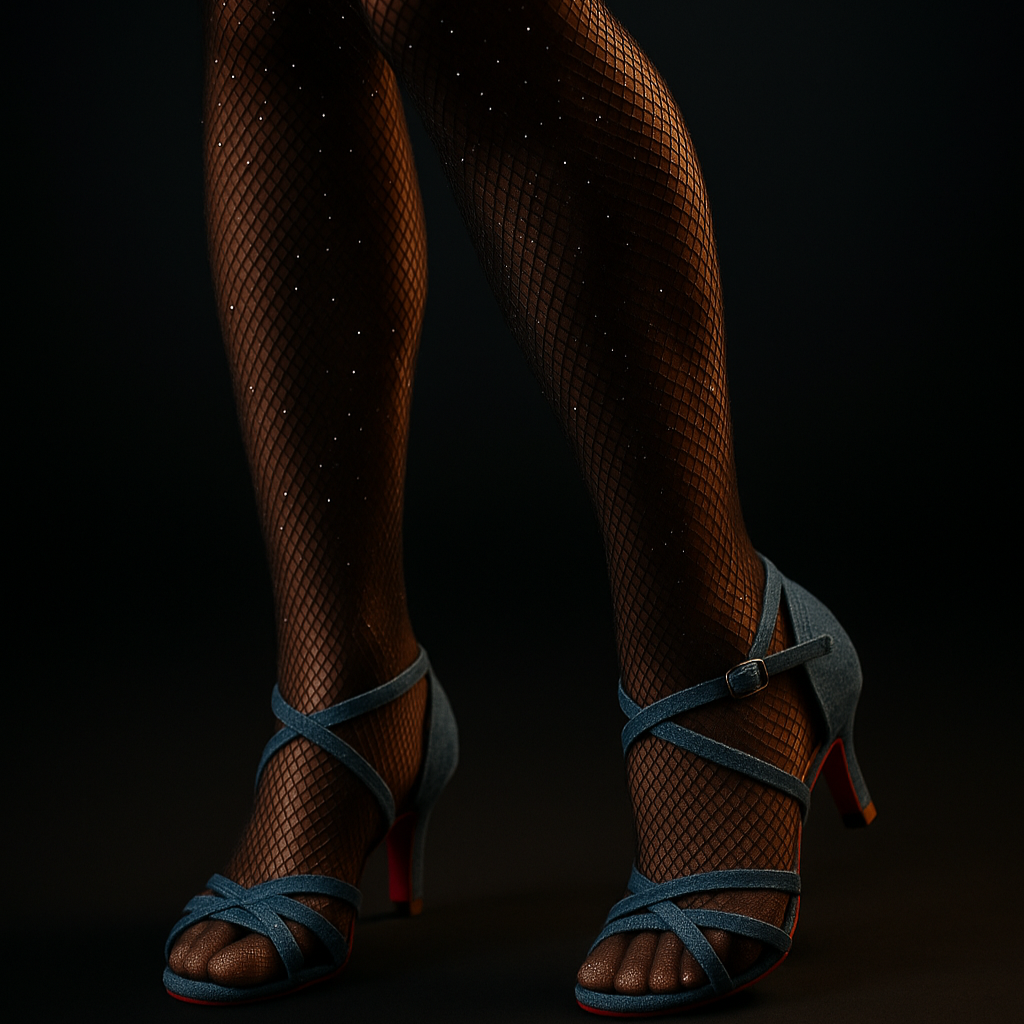 Le modèle Maïa, en finition jean’s chic, se distingue par sa légèreté et son confort parfait pour la salsa, la bachata et les danses de salon.